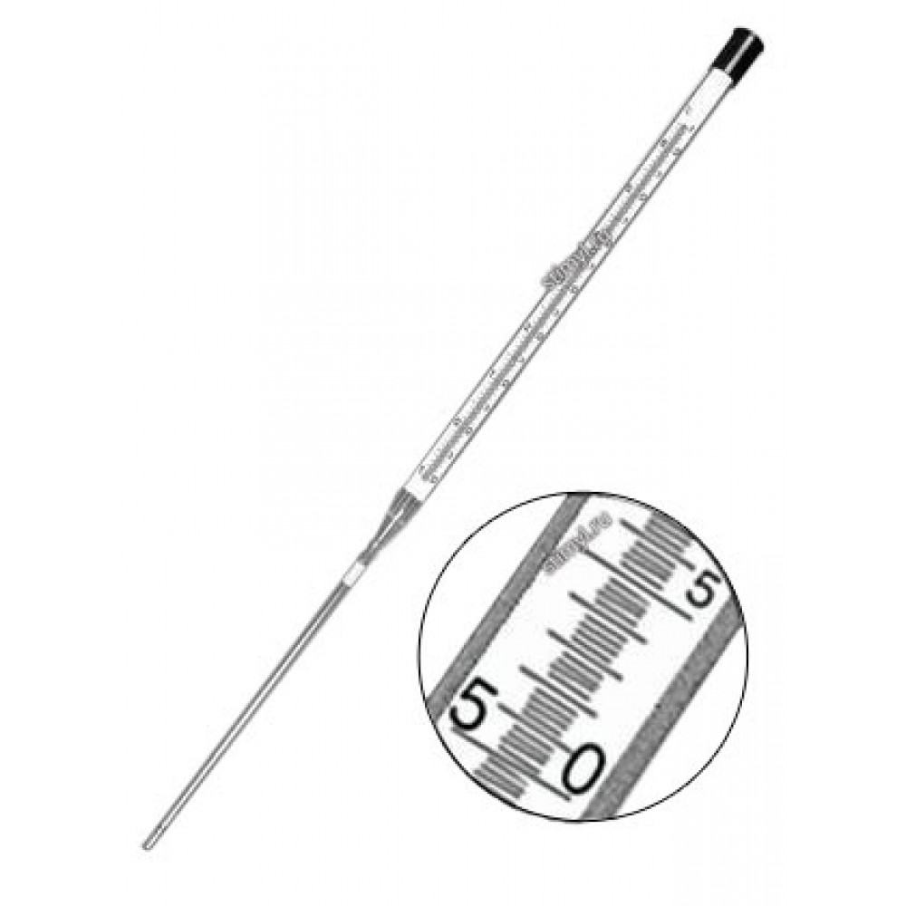Термометр ТЛ-7 для бактериалогических термостатов предназначен для измерения температуры при работе на бактериологических термостатах. Термометр для бактериалогических термостатов.Термометр предназначен для измерения температуры при работе на бактериологических термостатах.Изготавливаются по ТУ25-11.1388-77 и ГОСТ 28498-90.Имеет «Сертификат об утверждении типа средств измерений».КонструкцияСтеклянный термометр с вложенной шкалой из молочного стекла.Длина верхней части термометра 385±10 мм, нижней части 240±10 мм.Диаметр оболочки: в.ч 16,5±0,5 мм, н.ч. 8±1 мм.